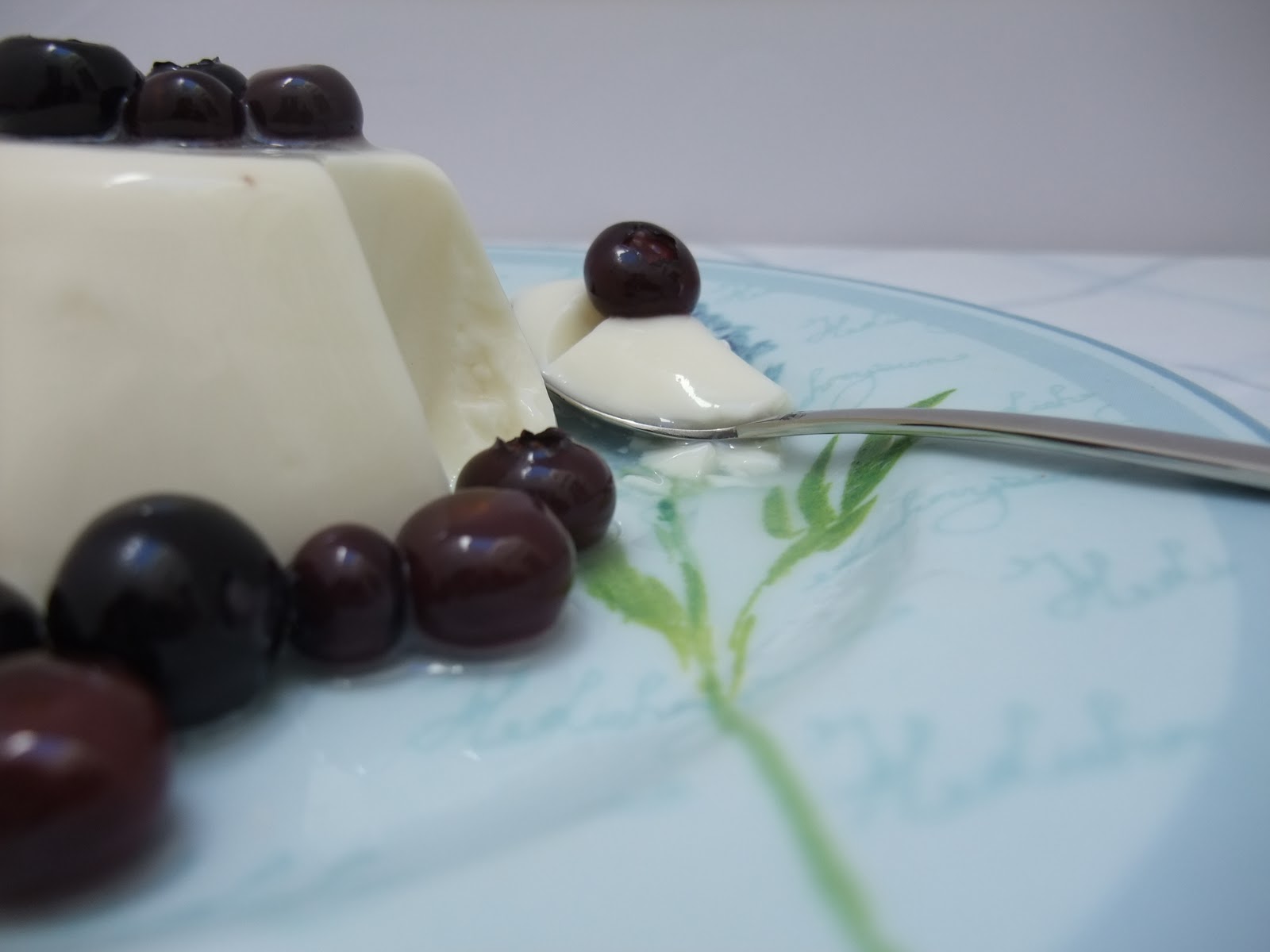 En esta ocasión he preparado una Pannacotta (blanca como tengo la cabeza) a la que le he preparado un almíbar de arándanos, como recomienda Amanda Hesser en The Essential New York Times Cook Book (mi libro de cabecera últimamente). Definitivamente que le va a la perfección ese almíbar, como todas las recomendaciones de este libro.